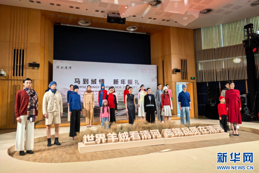新华网石家庄1月23日电(王立鹏)1月22日,“马到绒情 新年暖礼”2026清河羊绒首秀活动在新华通讯社综合楼举行。