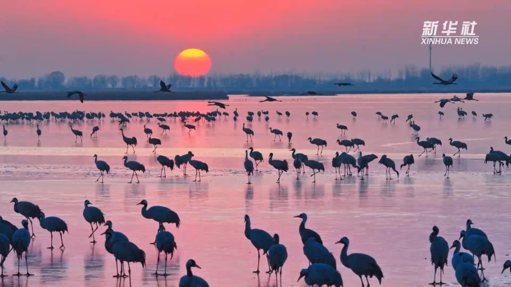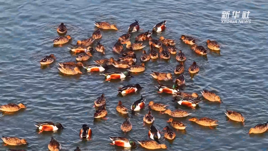 冬日的衡水湖上,成对的鸳鸯并肩嬉戏;上千只琵嘴鸭结群旋转;斑头秋沙鸭在水面上悠然游弋;成千上万只花脸鸭、秋沙鸭形成“鸟浪”,飞舞天际。在落日余晖里,灰鹤舒展长翼翩跹盘旋,悠扬的鸣叫声回荡在湿地上空,勾勒出一幅灵动秀美的冬日生态画卷。