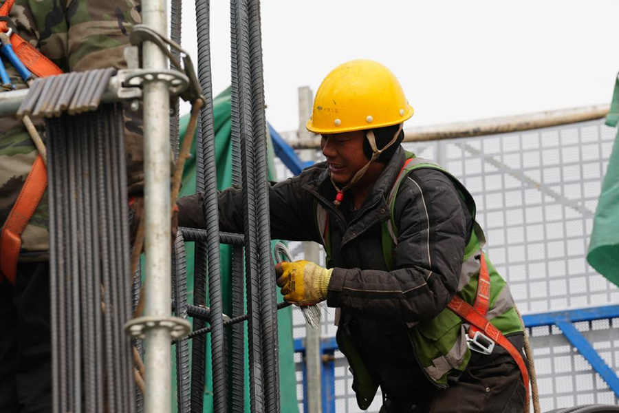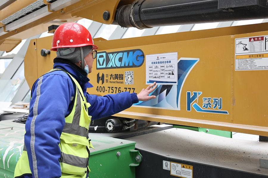 雄安国贸中心项目现场,建设者在检查施工设备。中国雄安集团供图
