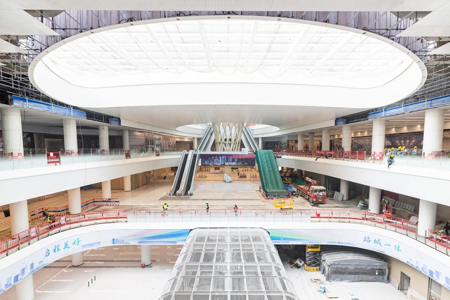 京雄快线雄安航站楼内,建设者在作业。牛思佳 摄