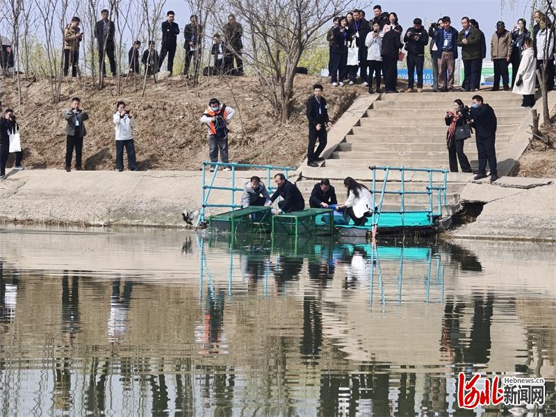 4月2日上午,全球首次青头潜鸭野化放飞活动在衡水湖举行。图为放飞现场。河北日报记者焦磊 摄