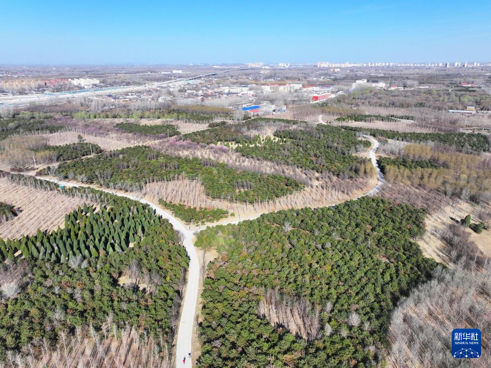 3月18日拍摄的雄安新区“千年秀林”(无人机照片)。新华社记者朱旭东 摄