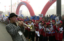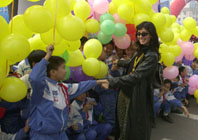 开幕式上外国演员和小朋友在一起